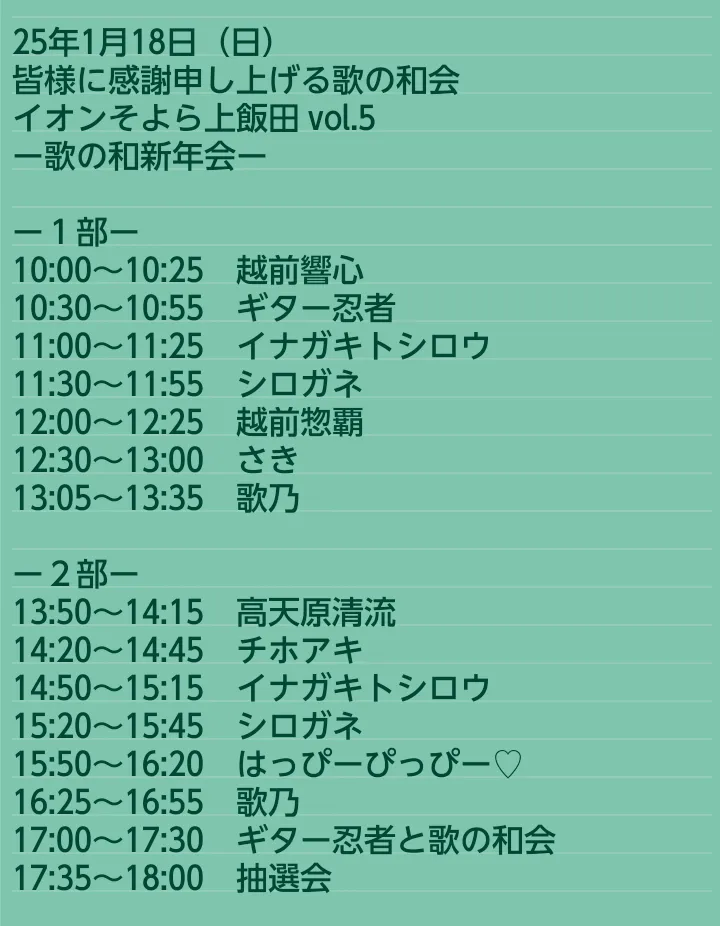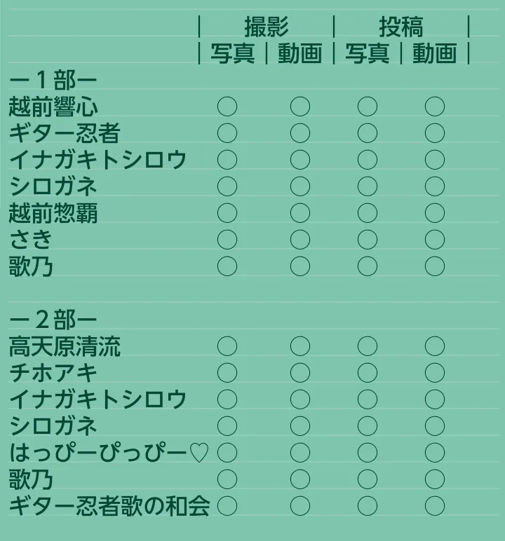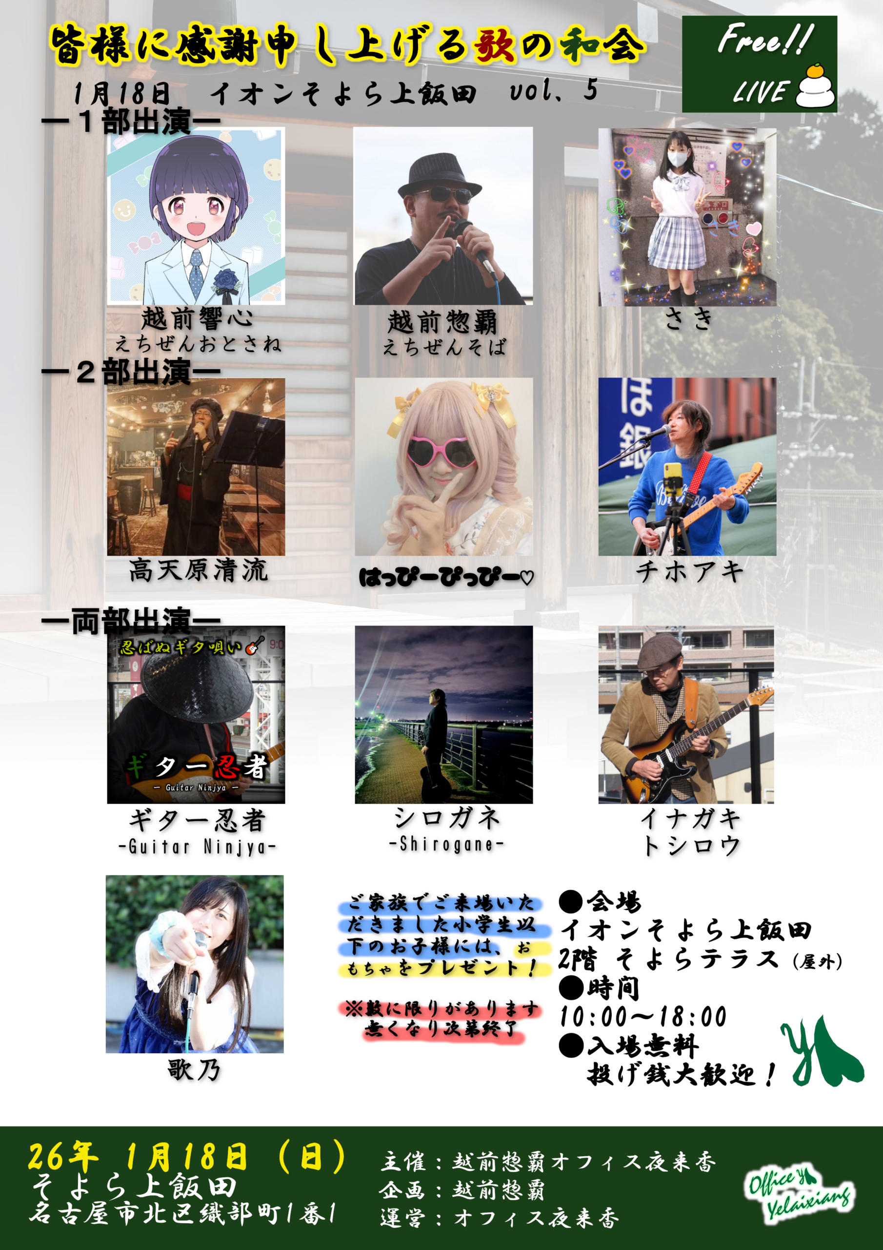 越前響心/ギター忍者/さき/越前惣覇/シロガネ/チホアキ/イナガキトシロウ/はっぴーぴっぴー♡/高天原清流/歌乃